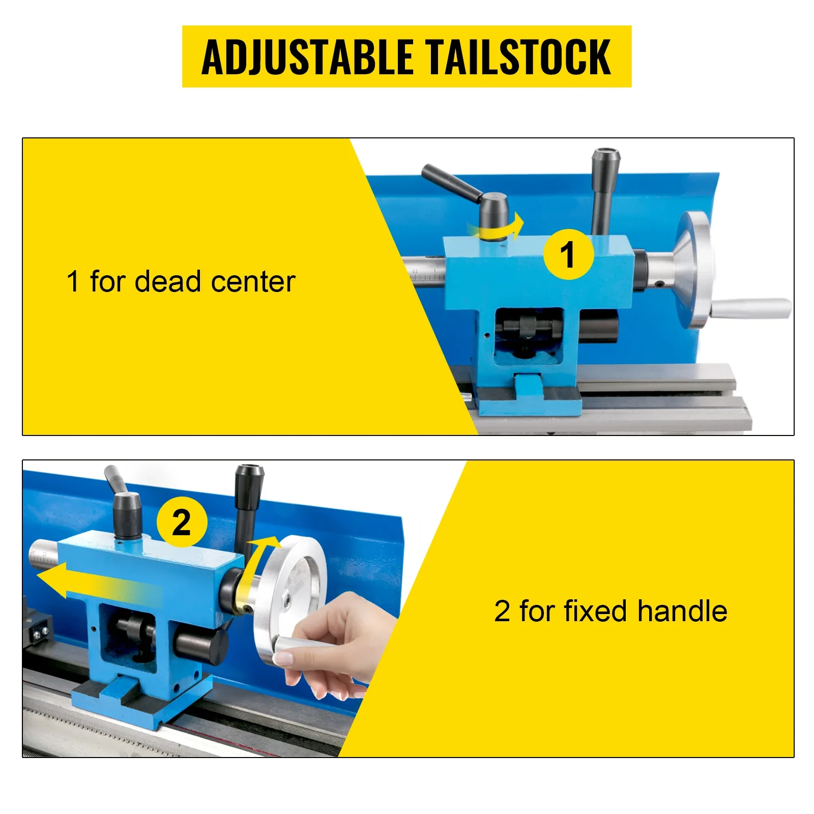 Large Working Capacity: This metal working lathe cranks out 550W and handles small to medium projects. It provides a 7.09" / 180 mm swing over bed and 13.78" / 350 mm center distance so that you can manage more extensive projects.