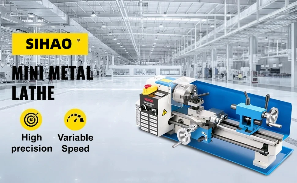 SIHAO Mini Metal Lathe 550W Variable Speed 2250RPM Precision Mini Benchtop Lathe 7×14 Inch for Sample Processing Modeling Works