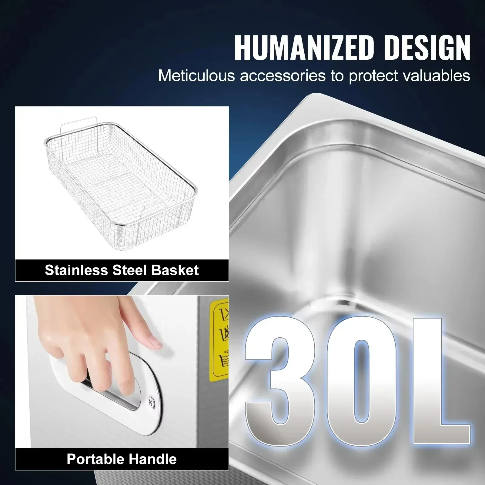 • Tank Capacity: 26-30L (Since the bottom of the ultrasonic cleaner is a curved surface, the actual volume will be smaller.)